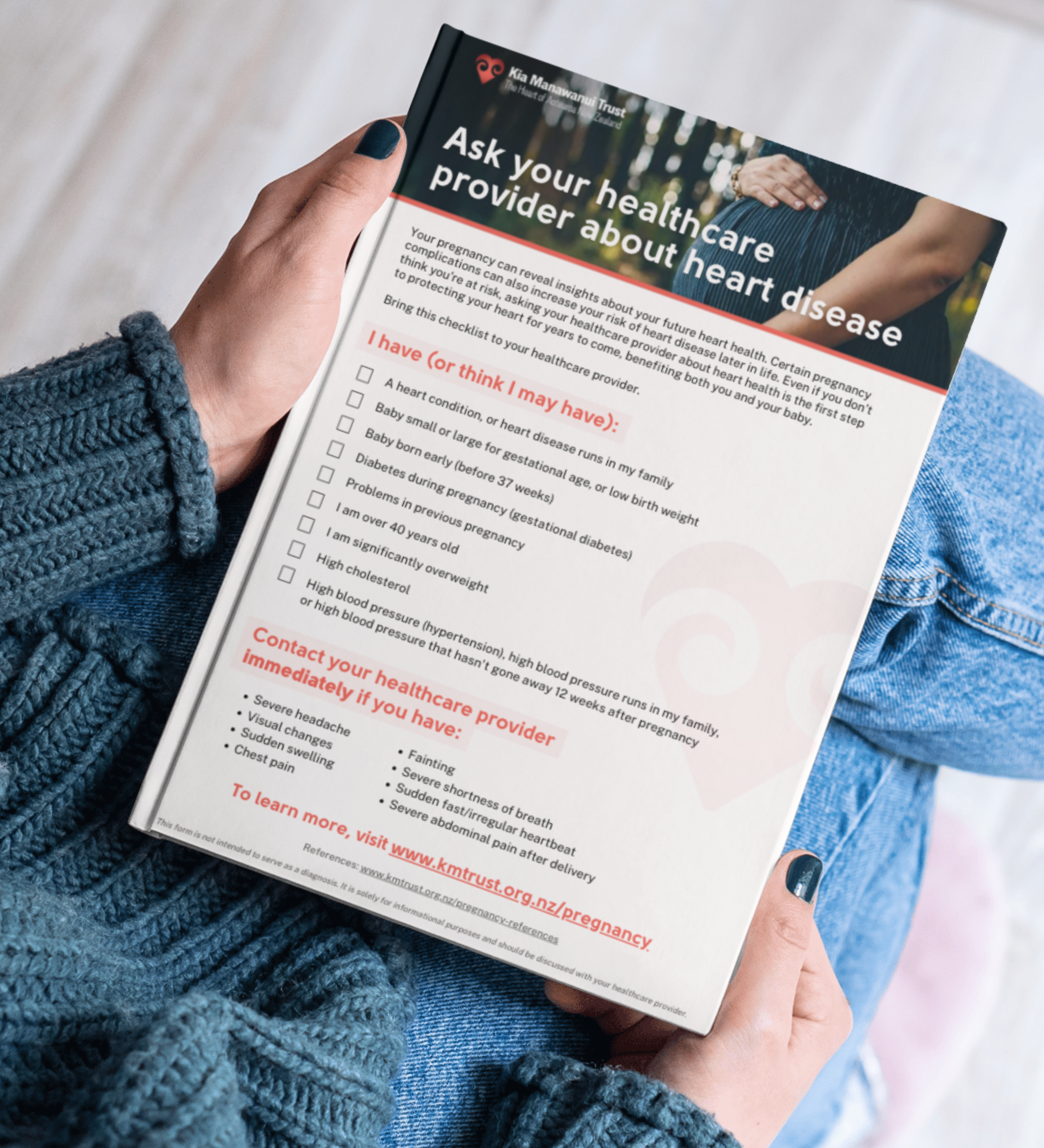 Heart disease is the leading cause of death for women and complicates around 1–4% of pregnancies in Aotearoa. It’s important to talk with your healthcare provider about your heart health, both during and after pregnancy.